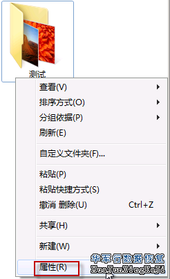 找到 F 盘“测试”文件夹,右键单击鼠标, 选择“属性”