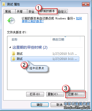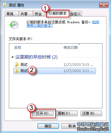 如果文件夹中有多项内容,而您只想恢复其中之一,可以在“以前的版本”选项卡上,选好合适的还原点后,按“打开”