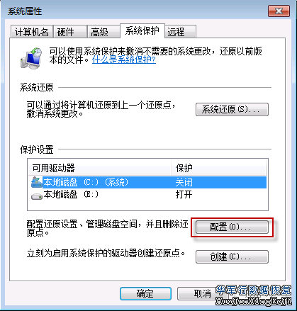 接着,选择还原对象。在保护设置栏中,选择要创建还原点的驱动器(例如,这里我们选择 C 盘),按“配置”