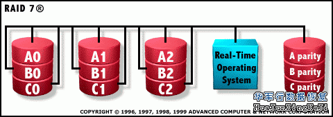 RAID 7 不仅仅是一种技术,还是一种存储计算机(Storage Computer )。RAID 7 存储计算机操作系统(Storage Computer Operating System )是一套实时事件驱动操作系统,主要用来进行系统初始化和安排RAID 7 磁盘阵列的所有数据传输,并把它们转换到相应的物理存储驱动器上。通过自身系统中的阵列电脑板来设定和控制读写速度,存储计算机操作系统可使主机I/O 传递性能达到最佳。如果一个磁盘出现故障,还可自动执行恢复操作,并可管理备份磁盘的重建过程。