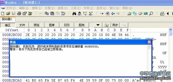 重新用WINHEX打开此逻辑磁盘,又弹出新的错误提示。图13: