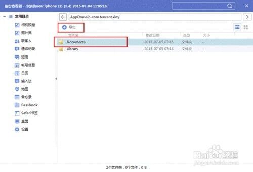 单击选中“Documents",再点击“导出”按钮,然后选择保存的路径并进行导出即可。