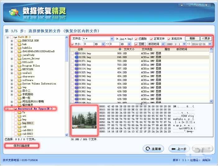 保存扫描进度 有时,需要恢复的文件比较多,一次未能将要恢复的文件全部筛选出来,这是,可以保存这次扫描的结果,下次筛选文件时,就不必费时重新扫描了,点击“保存扫描进度”按钮,即可保存本次扫描结果。