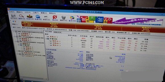 3、进入PE系统后,我们在桌面上可以看到有一个“DiskGenius硬盘分区工具”,我们点击进入DiskGenius,进入里边我们必须要看到可以检测到这块硬盘,如果检测不到,基本该硬盘已经没法通过普通的方式免费修复了。通常硬盘如果问题不严重,我们进入DiskGenius工具还是可以正常识别到应怕分区的,如下图所示: