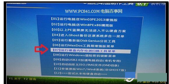 如上图所示,故障硬盘依旧可以被正常识别,对于这种情况修复就比较好办了,解下来我们就可以尝试修复硬盘了。 4.关闭刚才打开DiskGenius,然后从左下角的开始里操作选择重启电脑,然后又会进入U盘启动界面此时我们选择“运行硬盘内存检测扫描菜单(也可直接按数字7选中)”选中后,按Entel回车键确认即可,如下图所示: