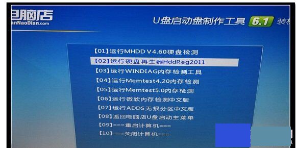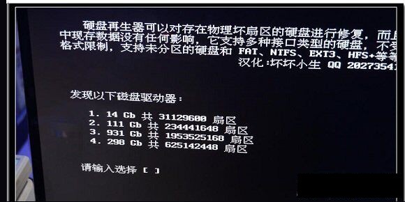 进入运行硬盘内存检测扫描菜单操作界面后,我们再使用键盘上的↓键选择第二项的“运行硬盘再生器硬盘修复工具”选中后,按回车键运行即可,如下图所示: