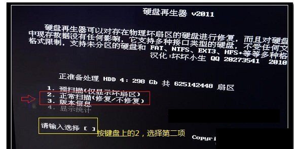 上面选择完成后,之后我们再选择第二项的“正常扫描(修复/不修复)”选项,如下图所示: