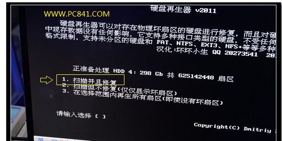 接下来我们再按键盘上的数字1选择第一项“扫描并修复”,如下图所示: