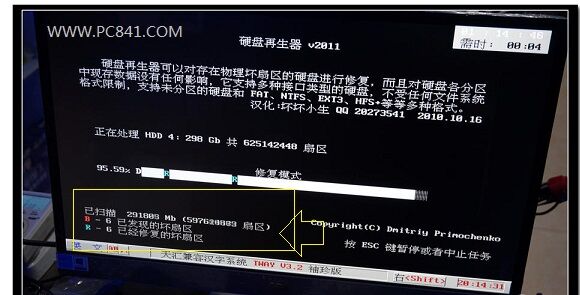 如果硬盘存在可修复的问题的话,我们可以看到相关故障与修复提示,如下图所示的为扫描一段时间会检查都的硬盘存在坏道,如下图所示: