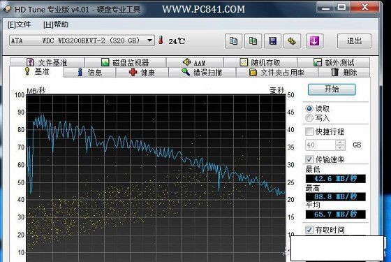 如果运气好的话,修复完成后,我们可以再对硬盘进行格式与重新分区,之后再去重装系统,就可以正常使用了,正常使用后,大家还可以使用HD Tune工具,检测一下硬盘的读取速度,如下图所示,说明硬盘已经没问题了。