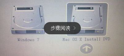 3.选择“Mac OS X Install DVD”,然后点按其下方的箭头,从 DVD 安装光盘启动。