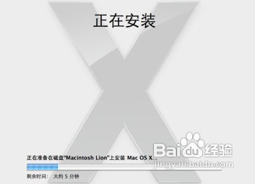 4.点按“安装”。Mac OS X 安装期间,屏幕底部会显示一个状态栏。