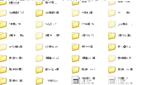 U盘文件夹名称变为类似如下情形:佞愳亠#?仠或者@$€等等不一,还不能删除,删除时提示:无法删除文件,无法读源文件或磁盘。注意看乱码文件大都特别大,甚至几十G都有。 出现这种问题的原因通常是因为不正常的插拔等情况造成的,导致U盘的文件分配表错乱了