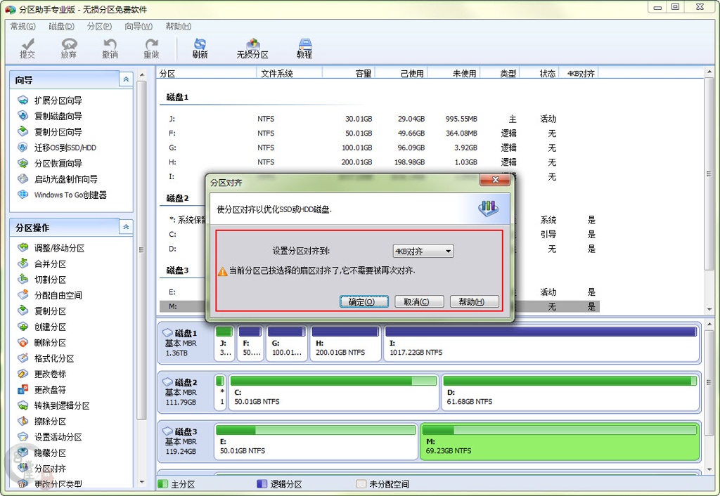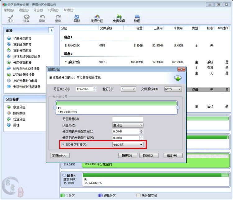 全新SSD在第一次使用时,可以使用分区助手,对SSD进行4K对齐的操作。
