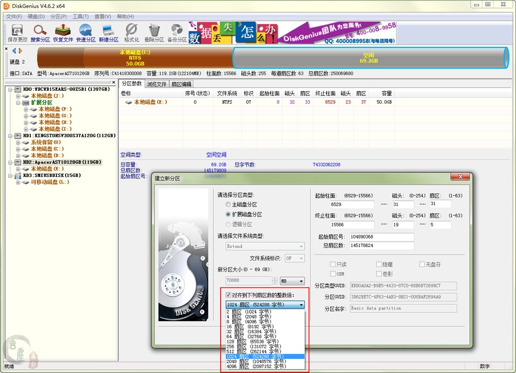 也可以使用DiskGenius(硬盘分区)来进行4K对齐操作。