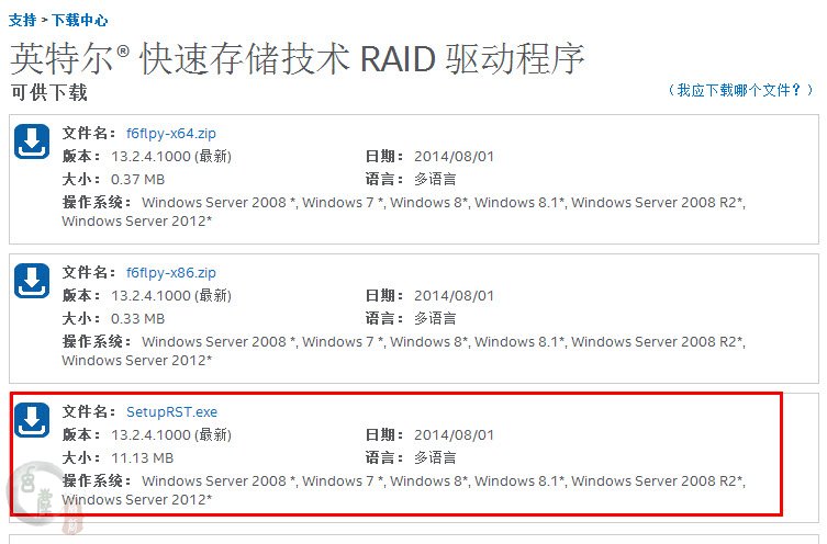 从英特尔的官网可以方便下载英特尔RST驱动。