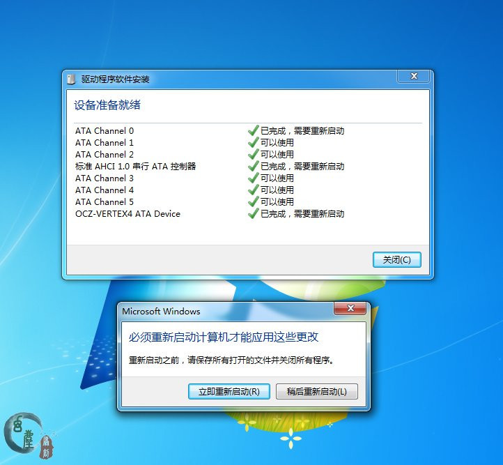 安装英特尔RST驱动后,会出现重启的提示对话框。这说明英特尔RST驱动已安装完成。