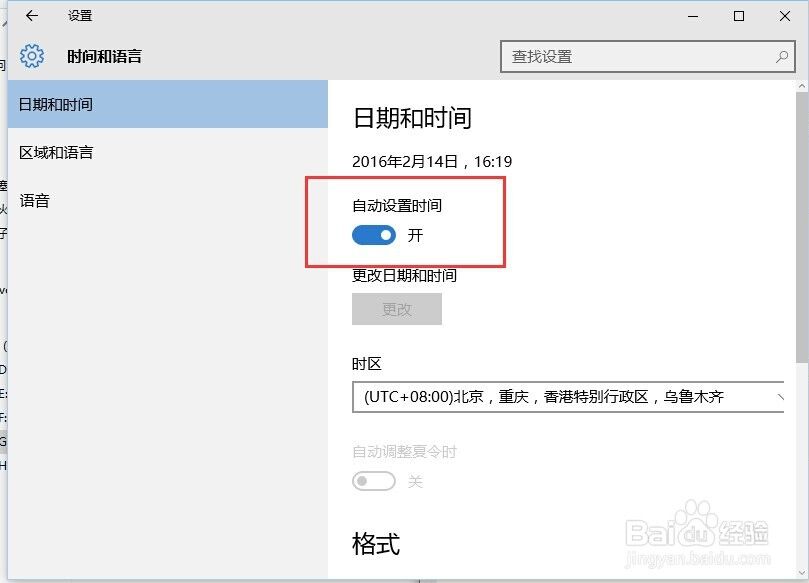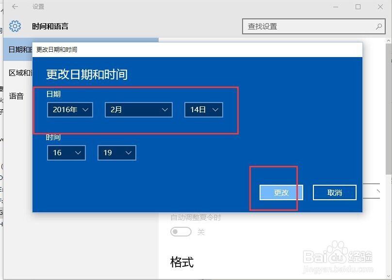 把右侧的“自动设置时间”的开关拨到“关”,然后点击下面的“更改”。