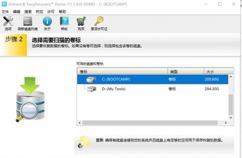 按照操作指引,选择需要试图恢复文件的磁盘分区,让软件对其进行扫描。