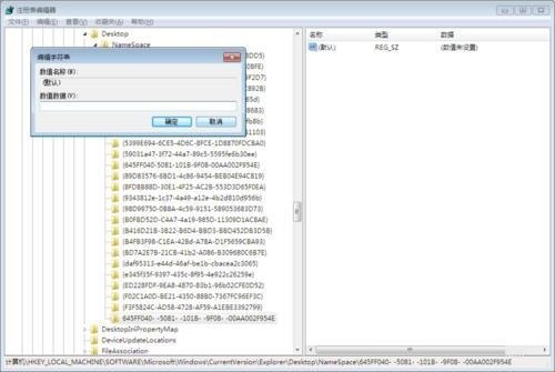 4、双击右侧的【默认】项,将数据数值改为【回收站】,点“确定”即可。
