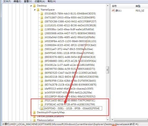 2、依次打开目录 HKEY_LOCAL_MACHINE / SOFTWARE/Microsoft / windows/ currentversion / explorer / desktop / namespace ;