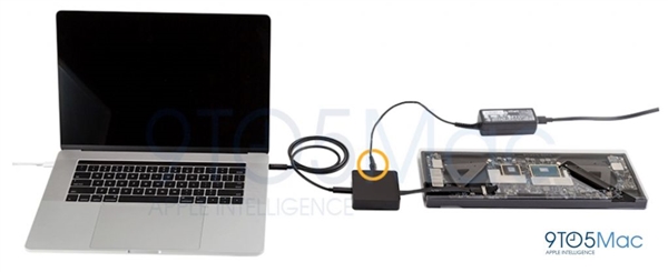现在,这种猜测被印证是准确的。该接口就是用来挽救SSD数据所用。 外媒最新曝光,苹果拥有一套专门针对Touch Bar版MacBook Pro的数据恢复设备,使用时将数据线的一头连接在送修机器的主板检修接口上,另一端连接一台正常工作的Mac设备,然后通过转换器就可以将送修机当中的数据拷贝出来,原理应该就像是将送修设备模拟成一个大U盘。