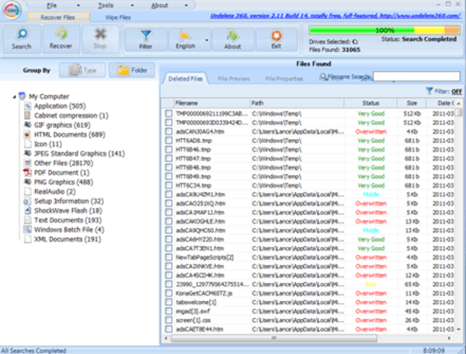 4. Undelete 360 Undelete 360拥有典型的Office应用程序的外观,它是基于一种快速而高效的算法构建的,允许用户恢复被删文件。