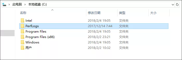 因此,可以直接删除PerfLogs文件夹,但是由于这个文件夹实在是太小了,因此删除它并不会带来太多容量的变化。