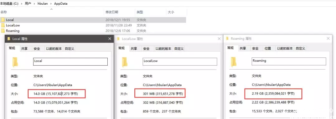 其中有一个叫“AppData”的文件夹也是隐藏文件夹,按照安全级别分为Local,Locallow和Roaming三个文件夹。