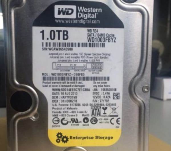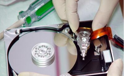 技王北京数据恢复公司工程师开盘检测,发现这块1000GB硬盘的结构非常复杂,是单碟250GB的早期1TB硬盘,4个碟片8个磁头。工程师在洁净室仔细检测发现
