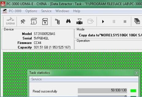技王数据恢复公司收到硬盘后,接到数据恢复工具PC-3000 UDMA Express上,通电检测,发现硬盘有坏道,进DE直接镜像,最后客户所要的数据全部数据恢复成